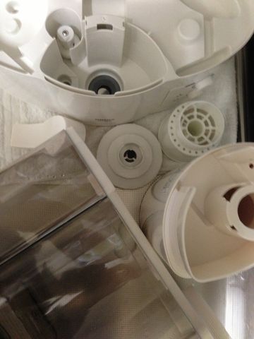 さて、加湿機、白くなる