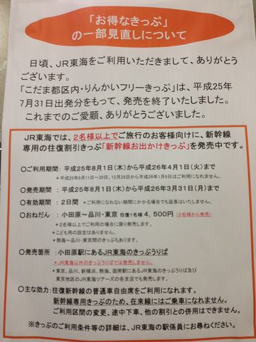 こだま・りんかいフリー切符廃止